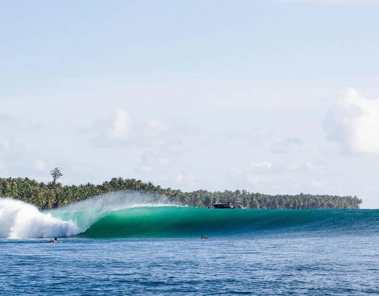 With two main takeoff zones and a defined channel, E-Bay offers multiple barrel sections on a single ride. The wave thrives at low tide, where the shape becomes more perfect and hollow, and even small swells can produce world-class conditions. Although not ideal for beginners, E-Bay delivers exactly what experienced surfers travel to the Mentawais for — consistency, beauty, and unforgettable barrels in a tropical paradise.